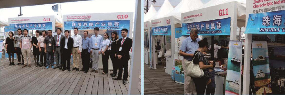 2015年11月5日至8日,组织了江龙船艇科技股份有限公司、珠海市琛龙船厂有限公司、广东杰鹏游艇产业发展有限公司、珠海海事杰游艇服务有限公司、珠海市美蓝游艇有限公司等6家珠海游艇企业报名参展,共22人组成的团队赴澳门参加第五届中国(澳门)国际游艇进出口博览会。在这次展览会上,我市展团在积极扩大品牌出口产品成交和技术合作成果的同时,充分展示为外商提供优质服务的良好形象。还利用这次参展机会,组织企业参观考察澳门游艇会,调查澳门游艇会的经营情况,进一步了解国外品牌产品的生产和销售,推荐我是品牌企业及品牌商品。通过活动,市参展企业拜访老朋友,结交了新客户,为进一步做好港澳与国际的贸易与技术合作打下了基础。这次珠海展团在展会期间的成果,广东杰鹏游艇产业发展有限公司斩获53尺游艇订单,成交陈家额568万人民币;江龙船艇科技有限公司与某港商达成100尺超级豪华游艇个性化定制意向,成交额预计3000万人民币。